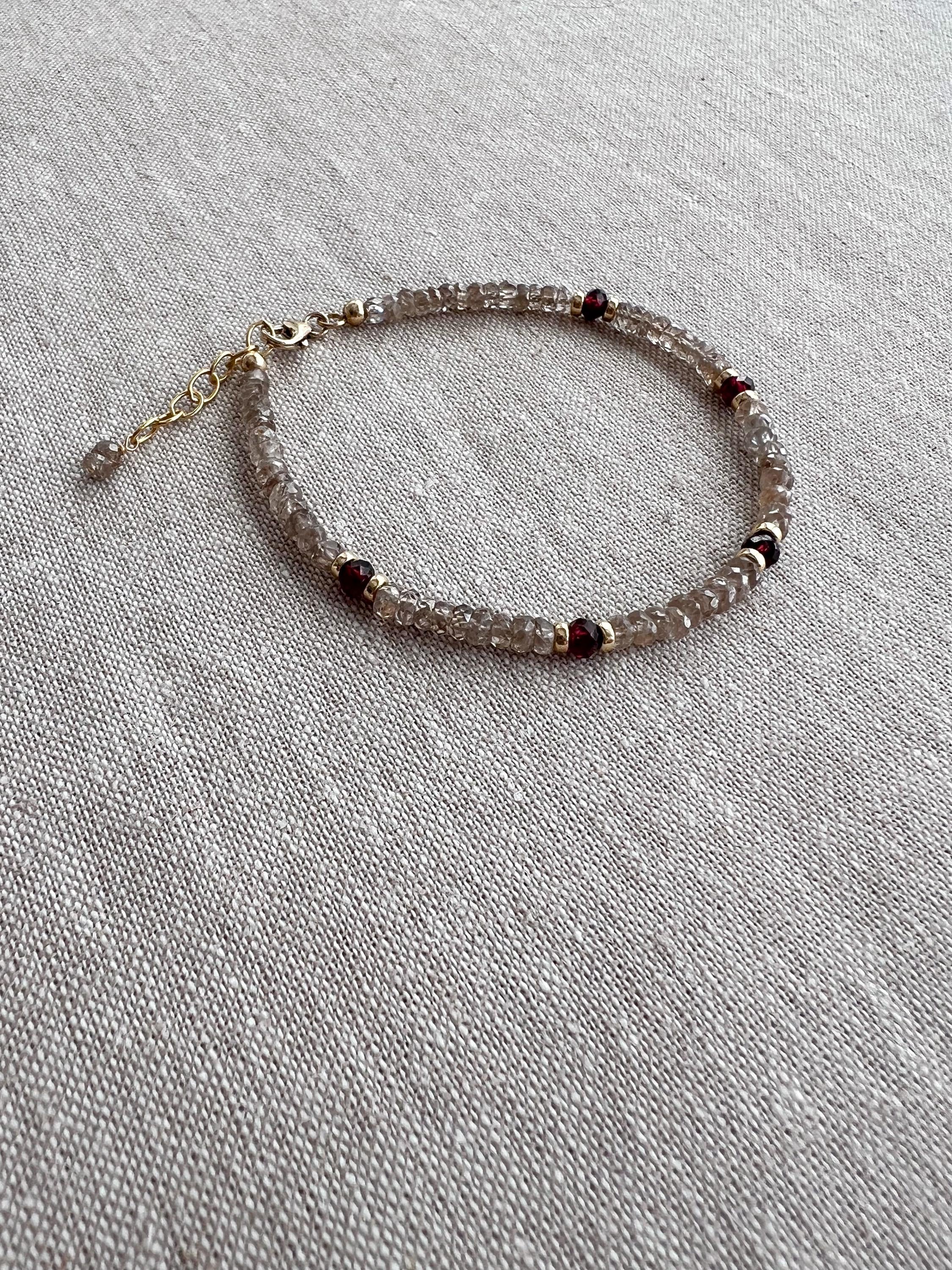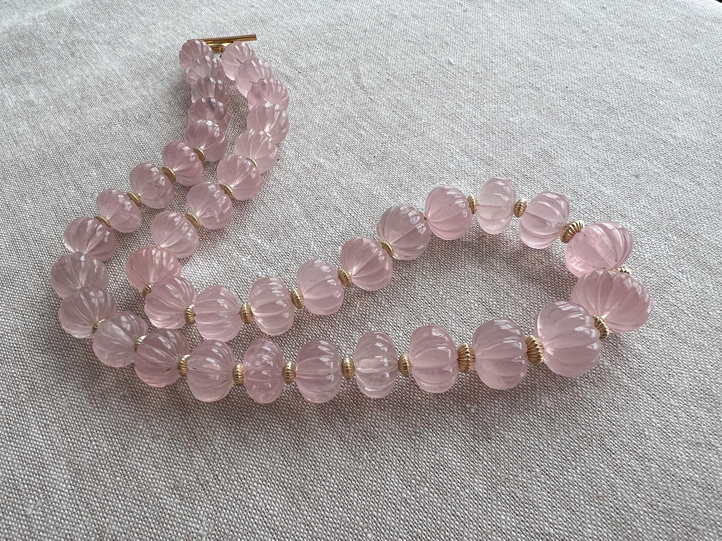 Black Spinel Necklace: Rose Quartz Focal Bead, 14k Gold Filled Clasp, Cubic Zirconia Accents