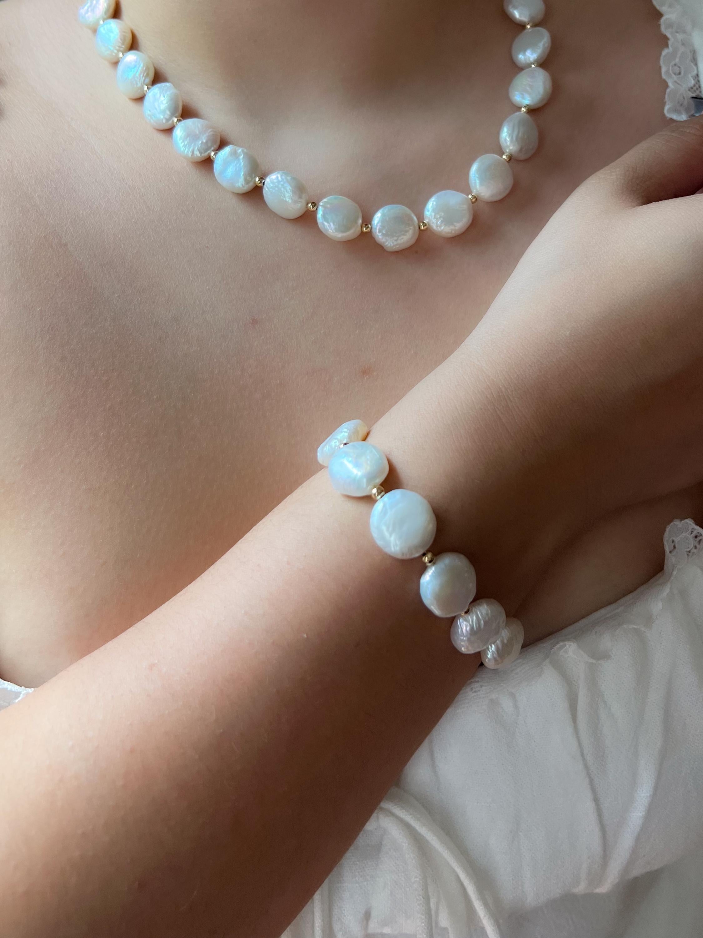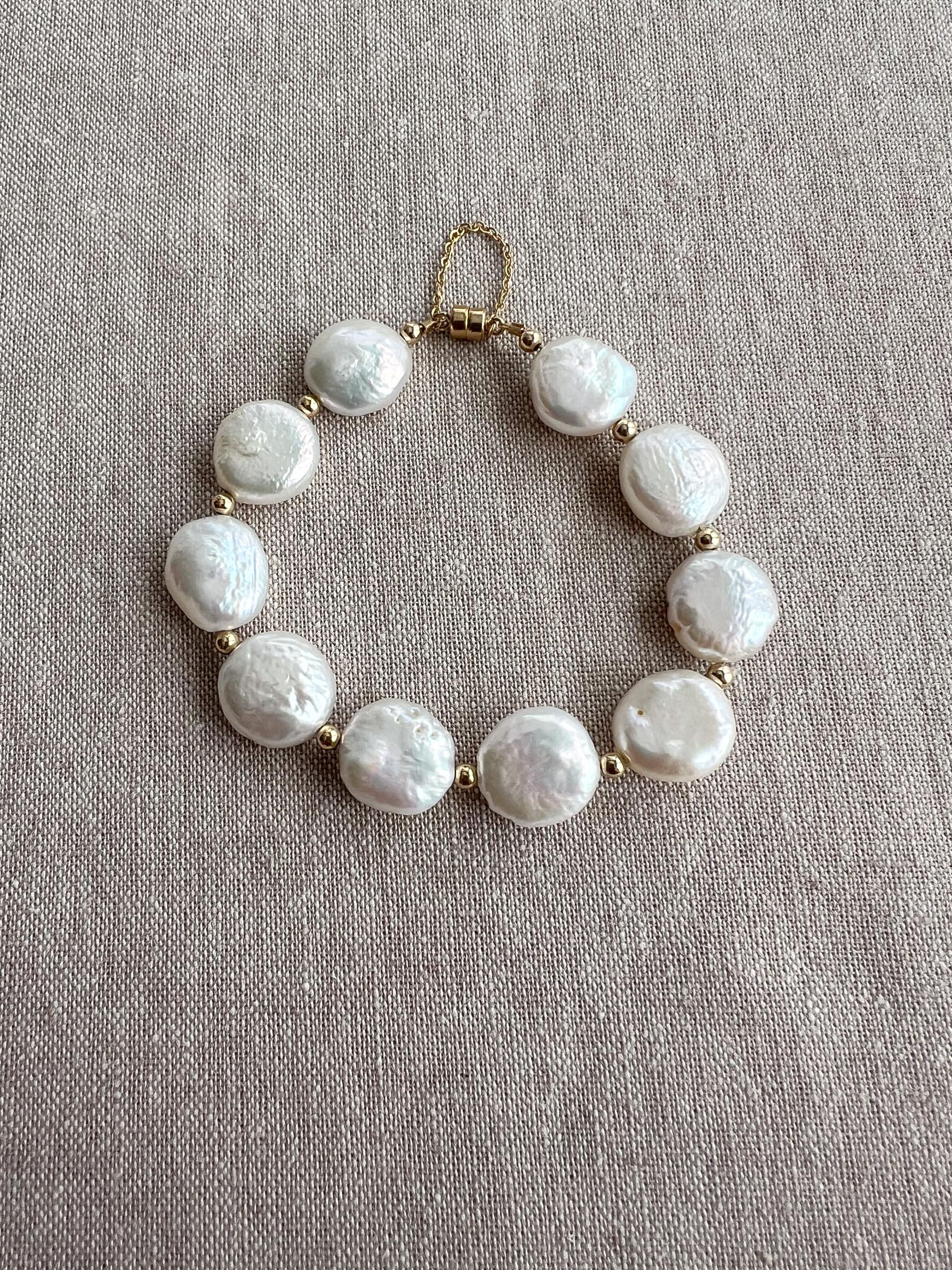Coin Pearl Bracelet: Freshwater Pearls, 14k Gold Filled Accents, Handmade