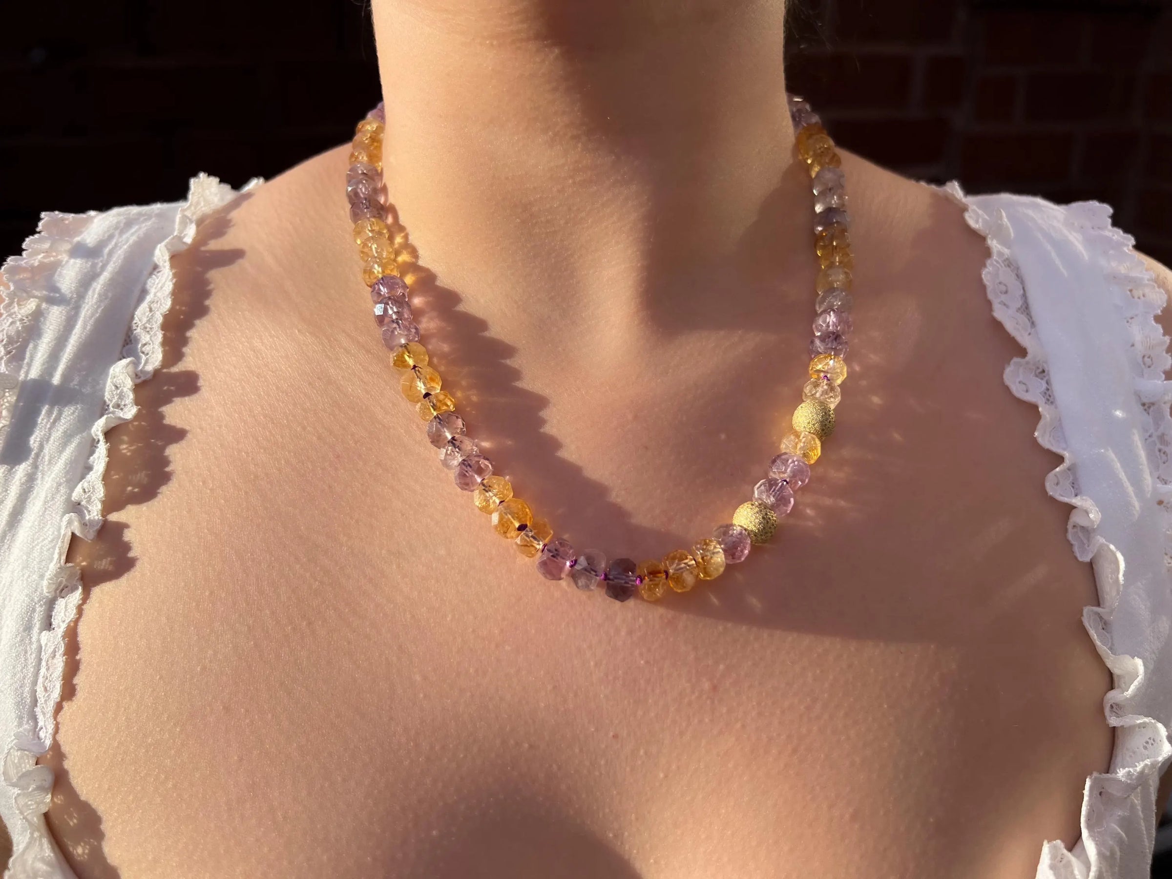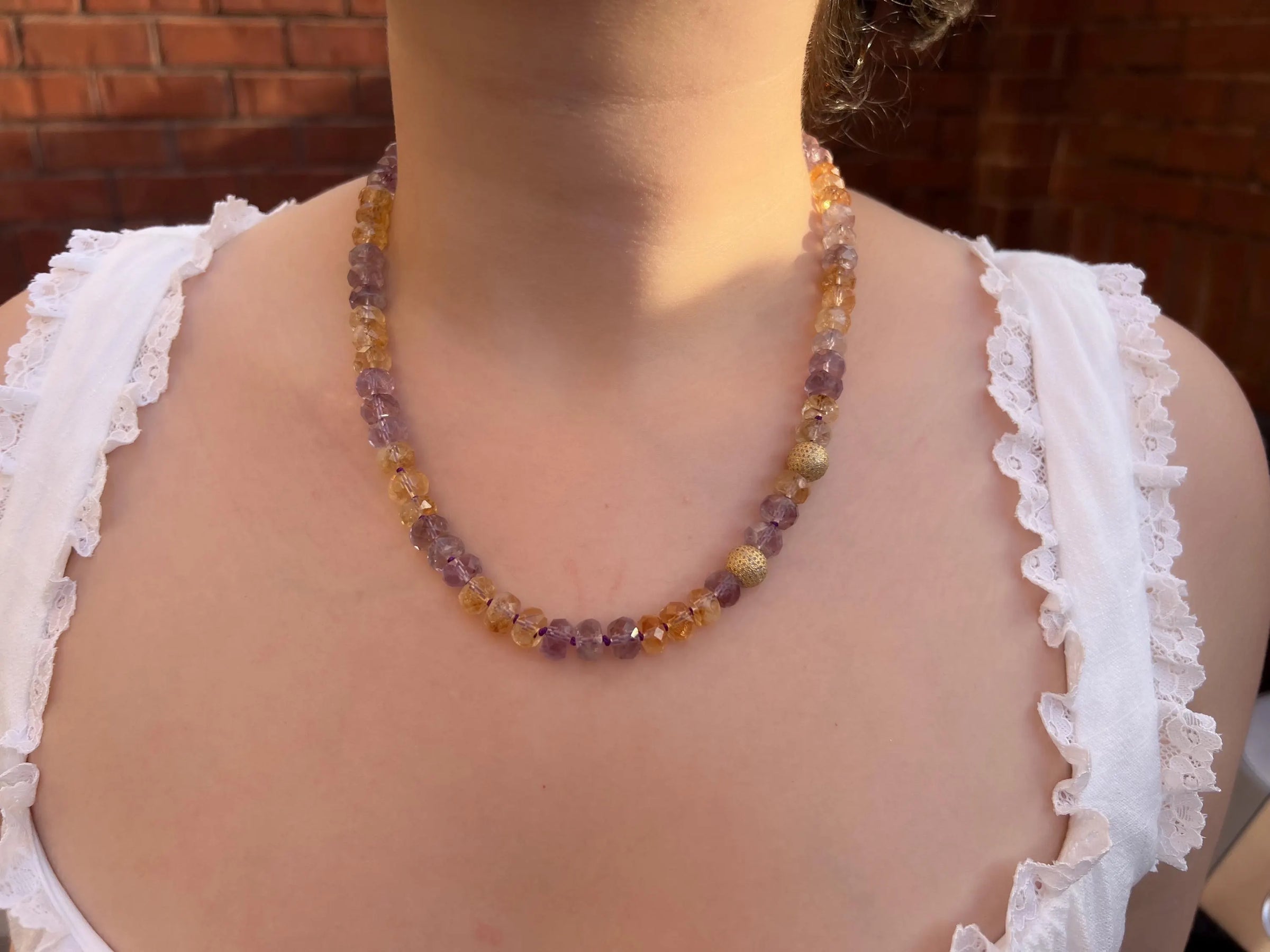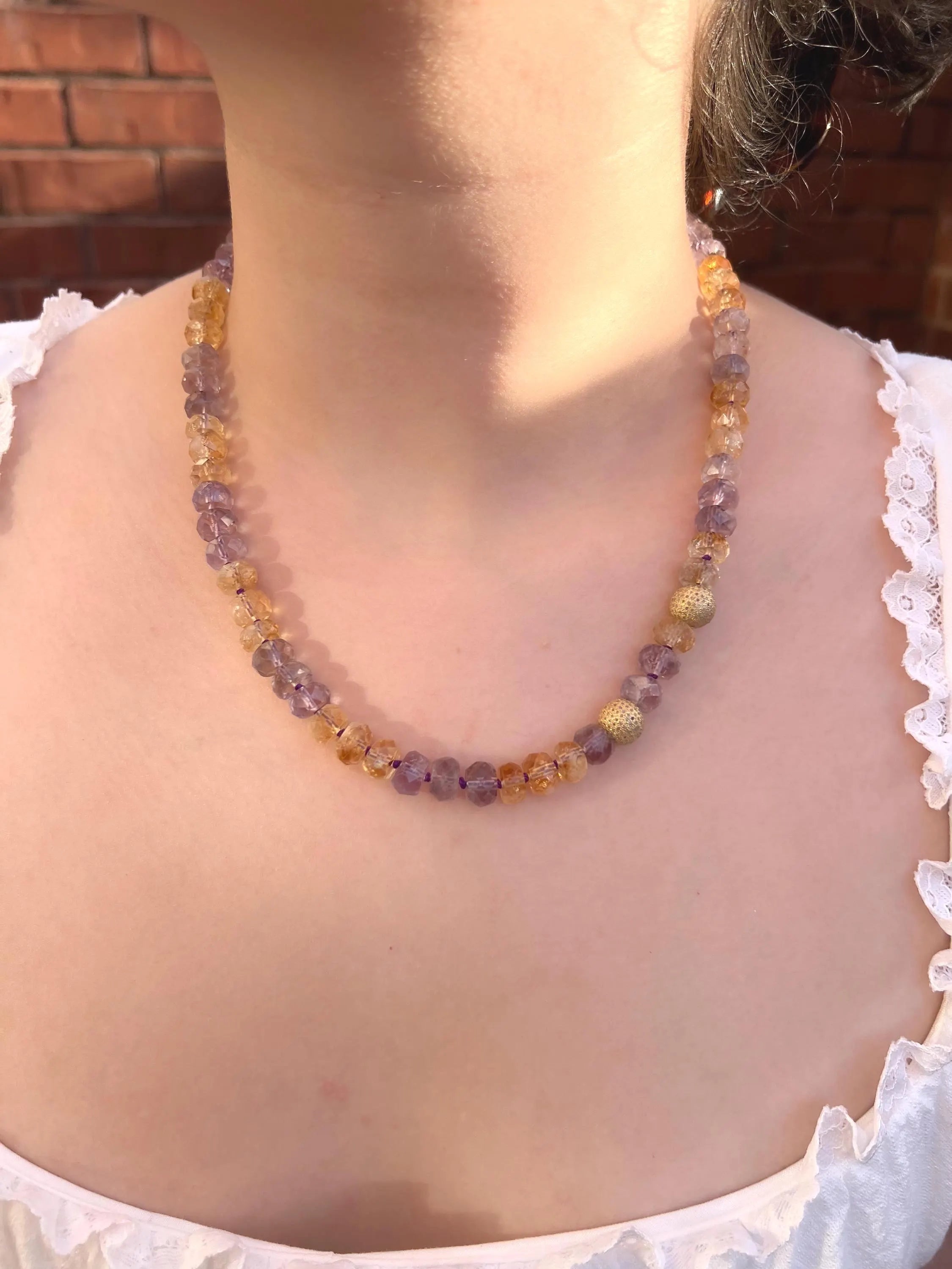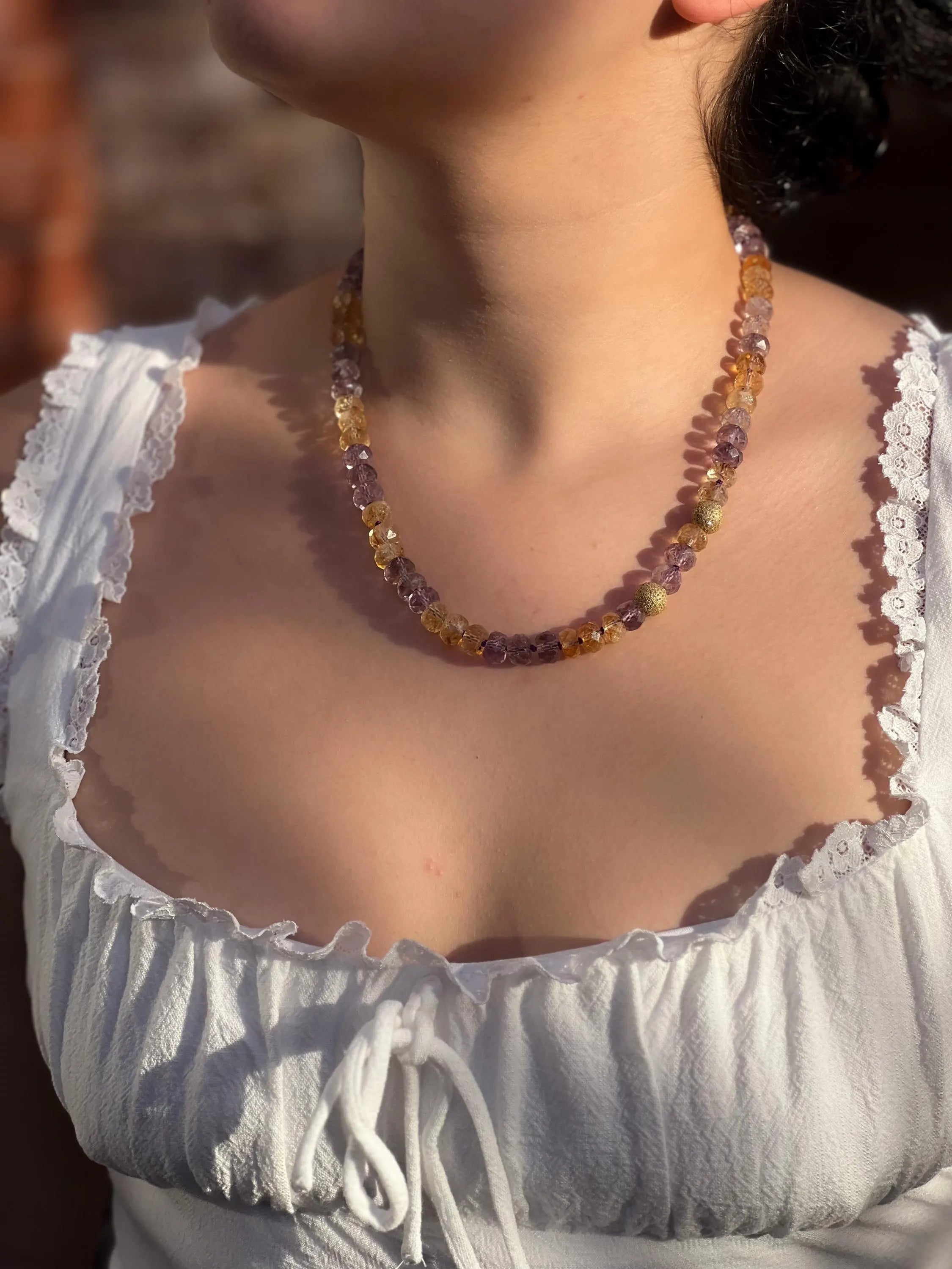 Ametrine Necklace, Gold Pave Accents, Fine Boho Gemstone Jewelry